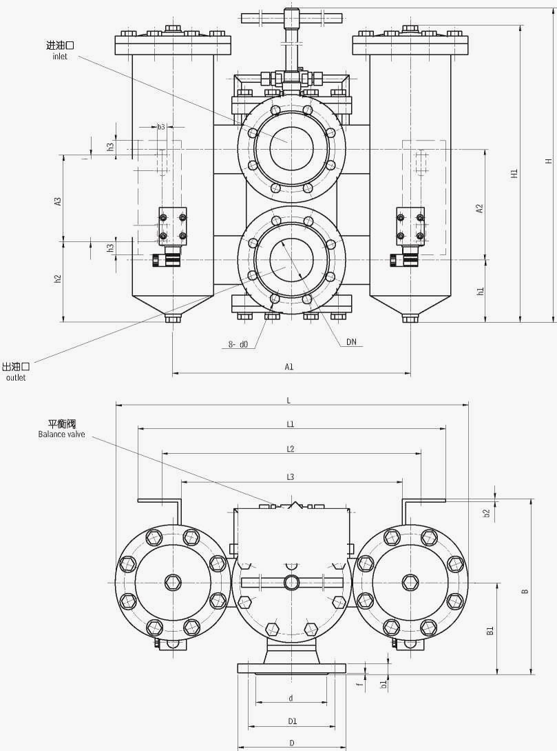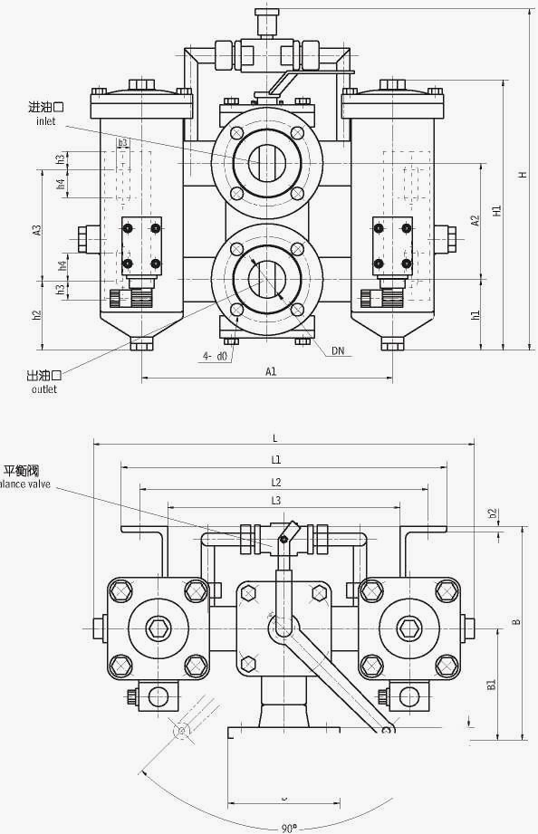 它的工作特點是當一只過濾器濾芯堵塞而需更換時,不必停止主機工作,只要打開壓力平衡閥并轉動換向閥,另一只過濾器即可參加工作,然后更換已堵塞的濾芯,需更換濾芯側過濾筒, 允許少量內泄漏。