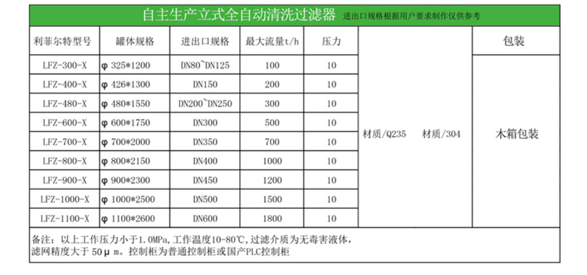 全自動自清洗過濾器結構形式上分立式全自動自清洗過濾器、直通式全自動排污過濾器、直角式全自動自清洗過濾器。自動反沖洗過濾器,LFZ型自動沖洗過濾器宜立式安裝,宜安裝在直角彎管上,LF型自動反沖洗過濾器宜水平安裝,直通式當垂直安裝時,水流方向應該是自上而下,安裝時應注意外殼上箭頭方向必須與水流方向一致,正常運行時,蝶閥處于開啟狀態,當需要排污時,關閉蝶閥,打開排污閥直至排出水質變清為止,開啟蝶閥,即完成排污過程。可保泵閥使用延長壽命等優點。
