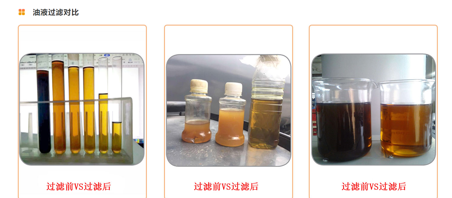 油液在設備長期運轉后,設備中的液壓油,潤滑油,機油等不可避免地被混入大量的鐵屑,水乳化物,元件損顆粒等雜質以及由于高溫氧化液壓油自身生成氧化變質產生的膠質瀝青質的污染,油液的顏色逐漸渾濁,油液粘度下降,性能降低,會嚴重影響系統的工作性能,降低元件的使用壽命,直接導致對設備的損壞。