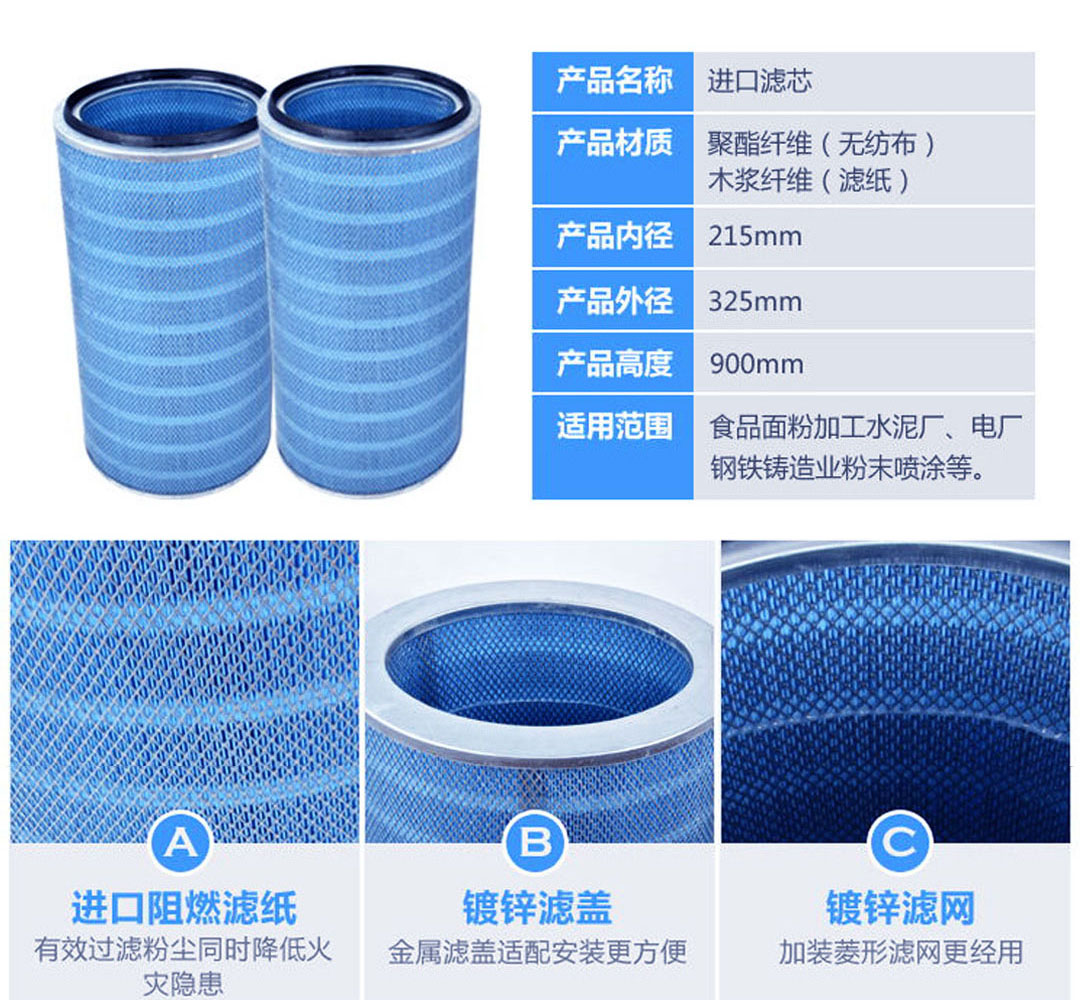 1、普通聚酯無紡布,除塵濾筒采用聚酯纖維材料制作,過濾精度為5um以上