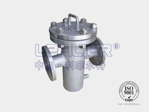 主要由接管、主管、濾藍、法蘭、法蘭蓋及緊固件等組成。當液體通過主管進入濾藍后,固體雜質顆粒被阻擋在濾藍內,而潔凈的流體通過濾籃、由過濾器出口排出。當需要清洗時,旋開主管底部螺塞,排凈流體,拆卸法蘭蓋,清洗后重新裝入即可。因此,使用維護極為方便。