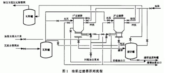 隨著催化裂化加工原料重質化,催化油漿產率越來越大,如何解決外排油漿問題尤為重要。催化油漿的性質極為特殊,組分以稠環芳烴為主,一般不帶有長側鏈,平均分子量很大,在500左右,比減壓渣油略輕,很少再用來做原料油。大多作為燃料油組分油使用。由于油漿內含有一定量的固體物雜質(主要是由催化劑顆粒及附著在催化劑上的膠質和瀝青質組成),較多的固體物不但加劇了對管線和設備的沖蝕,而且還會有堵塞爐嘴的危險。嚴重影響了燃料油的質量。因此,若能將油漿中的固體物過濾掉,就會改善油漿的品質,用途變得更加廣泛,從而提高油漿產品的附加值。油漿過濾器是一種能夠將油漿中5μ以上的固體物過濾下來的連續化操作的固液分離設備。 1 裝置現狀 中國石油化工股份有限公司天津分公司(簡稱天津分公司)催化裂化裝置設計能力1.3 Mt/a。原料以直餾蠟油(VGO)為主,另摻煉20%的焦化蠟油(CGO)和l8%的減壓渣油(VR)。目前原料殘炭實際為0.6%,略低于設計水平。反一再系統采用美國環球油品公司UOP技術,兩器為同高并列式,反應器采用MIP工藝技術。再生器形式為前置燒焦罐式,催化劑在燒焦罐內完全再生。 平穩操作期間催化裝置油漿固體物含量為6