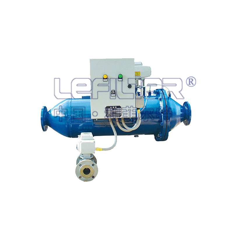 因為污垢對濾網的堵塞使濾網中的水和濾網外的水有的壓力差,當這個壓力差達到壓差開關的設定數值時,電控盒內的的水利控制閥、電機驅動、機體上的排污閥同時打開。電機轉動帶動自清洗過濾器機體內的不銹鋼刷對濾網上的污垢進行清理,再通過排污口排出污水 。