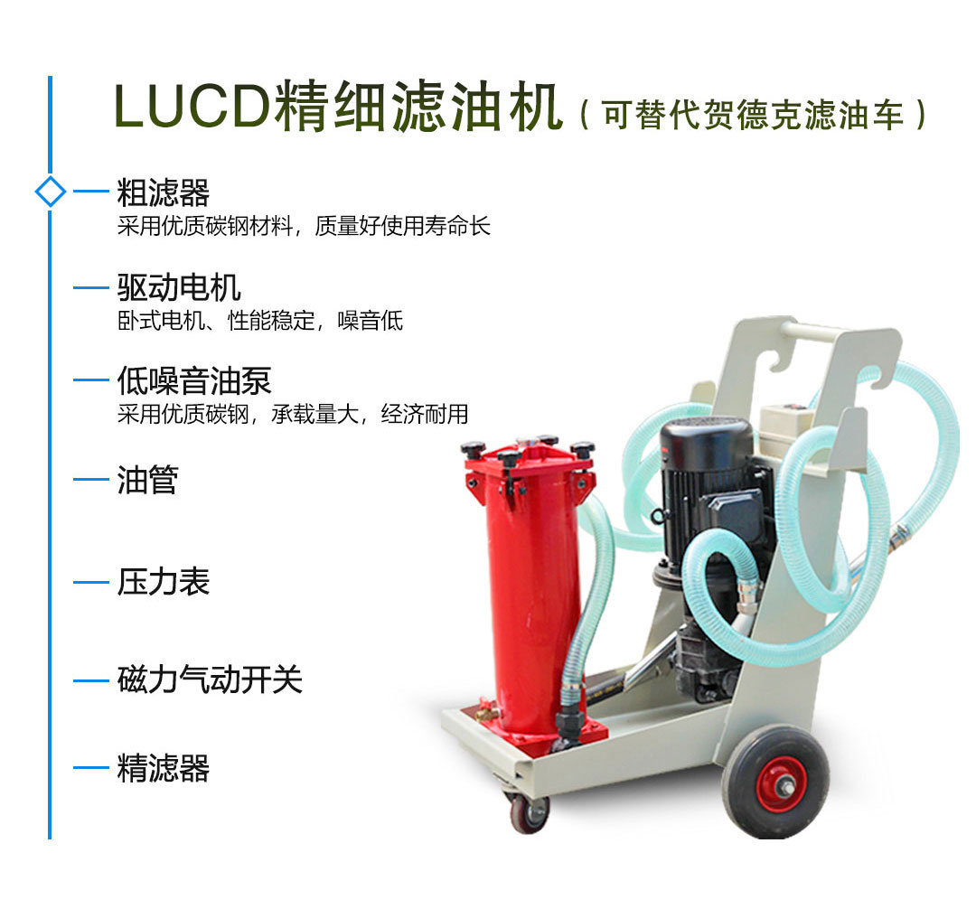 1、LUCD系列濾油車在啟動時,應注意不能使油泵反轉,以免引起油泵軸封吹出導致吸入空氣。