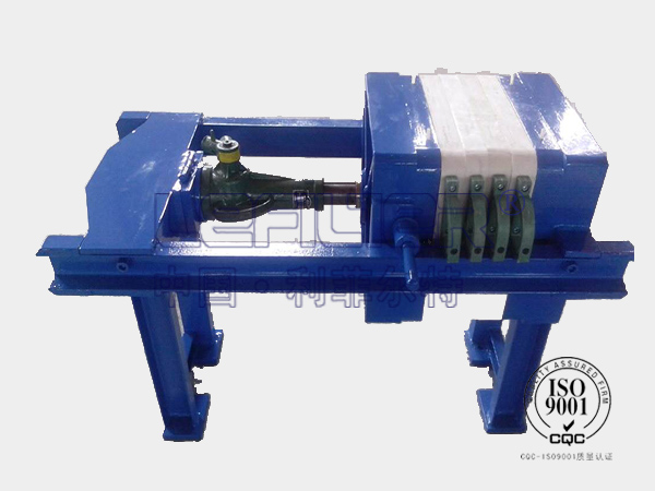 千斤頂壓緊壓濾機采用螺旋千斤頂作為壓緊裝置,具有結構簡單、操作方便、無需電源、經濟實用的特點,一般用于過濾面積1~40m2的壓濾機