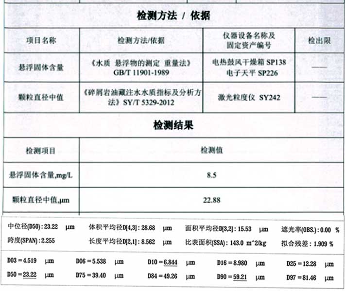 客戶水質中,粒徑直徑中值:22.88μm,懸浮固體含量:8.5mg/L,如果選型高速過濾器,懸浮物很難降下來,依據檢測結果,最終選用多介質過濾器。