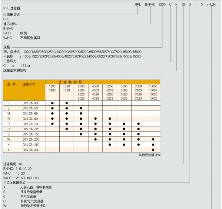 產(chǎn)品簡(jiǎn)介:替代替代賀德克RFLBN/HC1300CK10D1.X/-L24產(chǎn)品介紹 RFLBN/HC1300CK10D1.X/-L24主要用于潤(rùn)滑系統(tǒng)中的精過濾,該過濾器由筒體和支架組成,進(jìn)出油口的兩個(gè)法蘭在筒體的兩側(cè),該過濾器設(shè)有放氣孔,大流量的過濾器上蓋設(shè)有提升裝置,以便在維修時(shí)減輕維修人員的勞動(dòng),