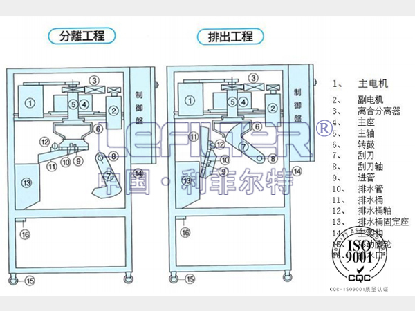 ①待處理的液體通過輔助泵進(jìn)入離心機(jī)。