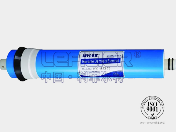 科氏反滲透膜TFC-UF系列是較精細的一種膜分離產品,其能有效截留所有溶解鹽份及分子量大于100 的有機物,同時允許水分子通過。醋酸纖維類反滲透膜脫鹽率一般大于 95%,反滲透復合膜脫鹽率一般大于 98%。在離子交換前使用反滲透可達幅度降低操作費用和廢水排放量。反滲透納濾膜的運行壓力一般介于苦咸水的 12bar 到海水的 70bar。