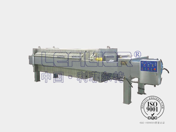 板框壓濾機(jī)有手動(dòng)壓緊、機(jī)械壓緊和液壓壓緊三種形式。手動(dòng)壓緊是螺旋千斤頂推動(dòng)壓緊板壓緊;機(jī)械壓緊是電動(dòng)機(jī)配H型減速箱,經(jīng)機(jī)架傳動(dòng)部件推動(dòng)壓緊板;液壓壓緊是有液壓站經(jīng)機(jī)架上的液壓缸部件推動(dòng)壓緊板。
