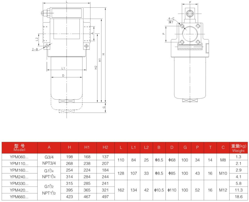YPM160中壓過(guò)濾器安裝于液壓系統(tǒng)壓力管路中,濾除工作介質(zhì)中的固體顆粒及膠狀物質(zhì),有效控制工作介質(zhì)的污染度。可以根據(jù)你需要裝配壓差發(fā)訊器及旁通閥。